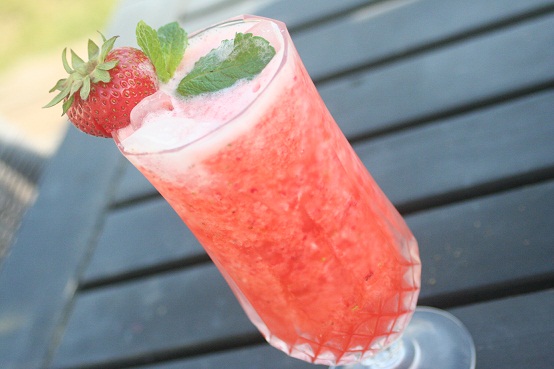 Strawberry Surprise/juice Strawberry surprise: Ingredients: Strawberries 1 cupWhite drink 1 bottleCrushed ice 1 cup Caster sugar 2 tbspLimo pani powder 3 tbsp Method:1. Blend all together till smooth.2. Serve, decorate with mint leaves.