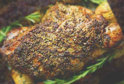 In the prepared roasting pan place the lamb, fluffy side up over the reck. Spread mixture all over the lamb & rub in thoroughly into the cuts that you scored before.